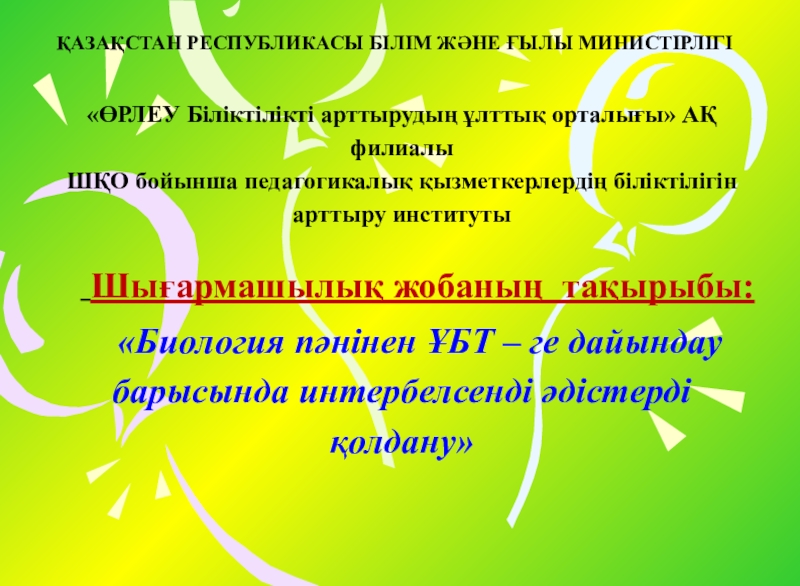 «Биология пәнінен ҰБТ – ге дайындау барысында интербелсенді әдістерді қолдану»
