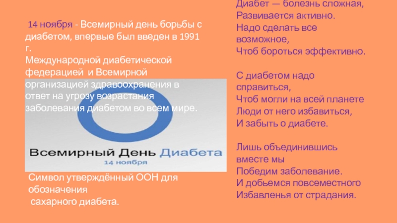 14 ноября - Всемирный день борьбы с диабетом, впервые был введен в 1991 г.
