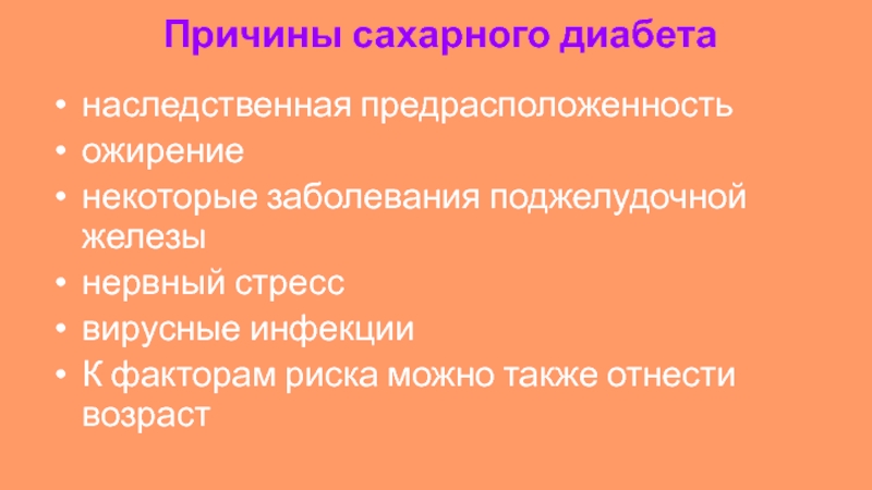 От 2 до 6 раз возрастает риск развития сахарного диабета 2 типа при наличии диабета у родителей или ближайших родственников. Вероятность дальнейшего наследования болезни в этом случае составляет 40 %.