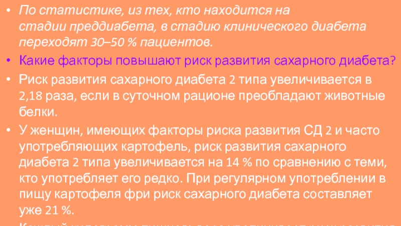 Слайд 11По статистике, из тех, кто находится на стадии преддиабета, в стадию клинического