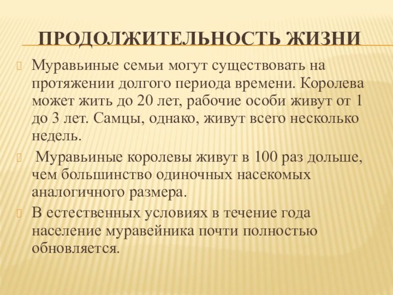 Муравьиные семьи могут существовать на протяжении долгого периода времени. Королева