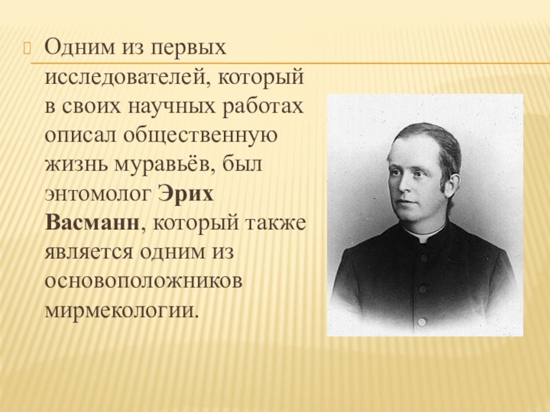 жизнь муравьёв, был энтомолог Эрих Васманн, который также является одним из основоположников мирмекологии.