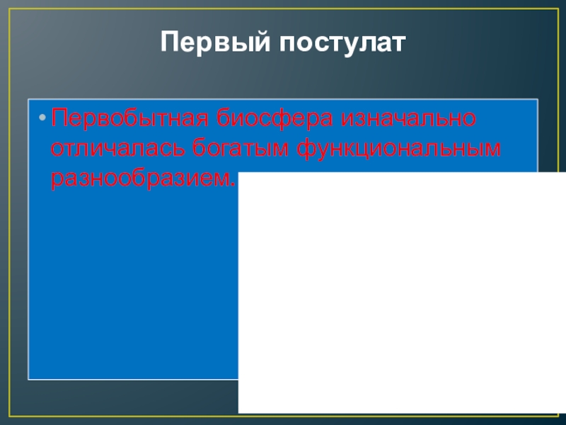 Первый постулатПервобытная биосфера изначально отличалась богатым функциональным разнообразием.