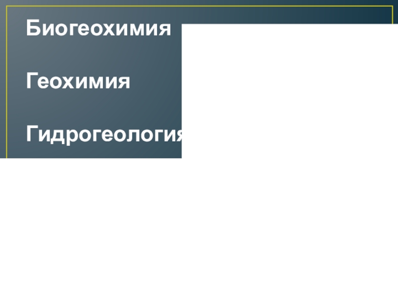 Слайд 3Биогеохимия Геохимия Гидрогеология