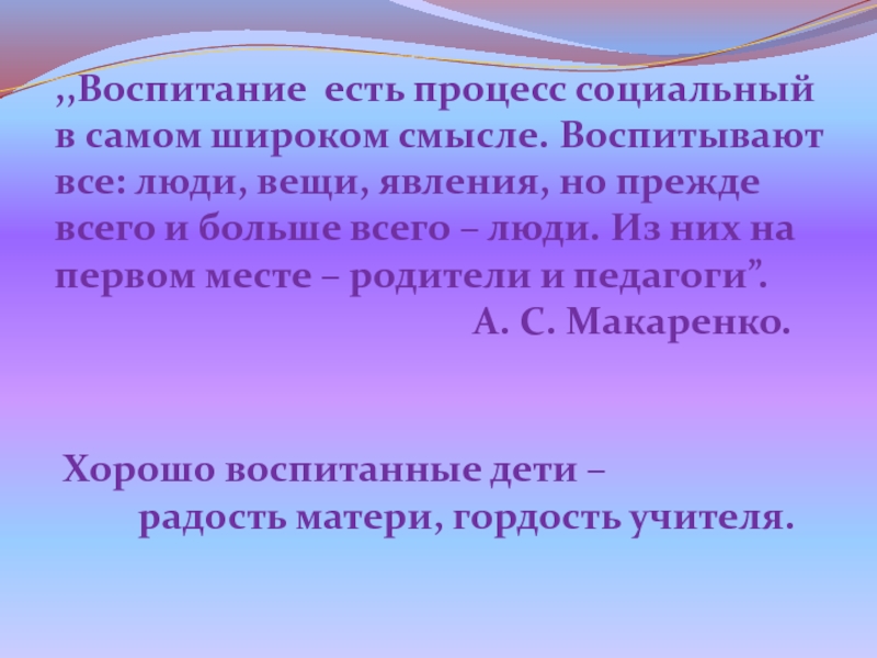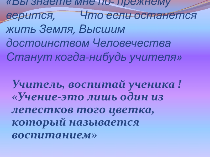 Учитель, воспитай ученика ! «Учение-это лишь один из лепестков того цветка, который называется воспитанием»