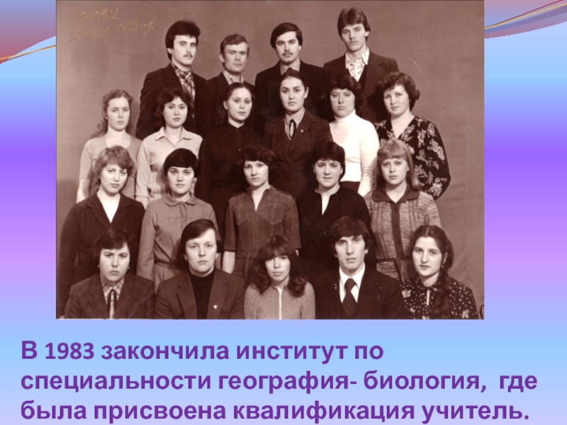 Образование: высшее, КГПИ- естественно-географический факультет;