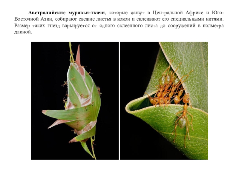 Слайд 6 Австралийские муравьи-ткачи, которые живут в Центральной Африке и