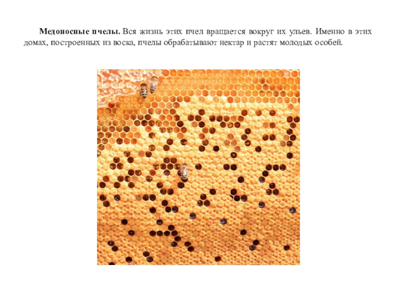 Слайд 12 Медоносные пчелы. Вся жизнь этих пчел вращается вокруг их