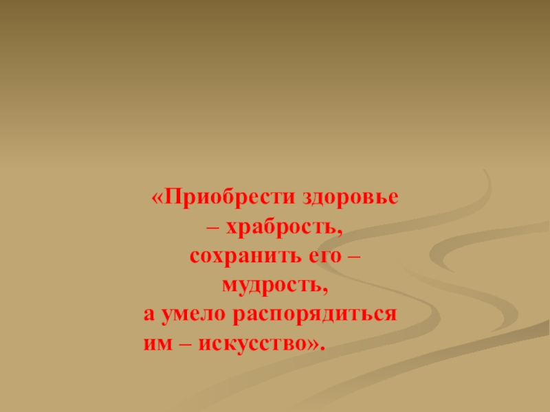 «Приобрести здоровье – храбрость,сохранить его – мудрость,а умело распорядиться им – искусство».