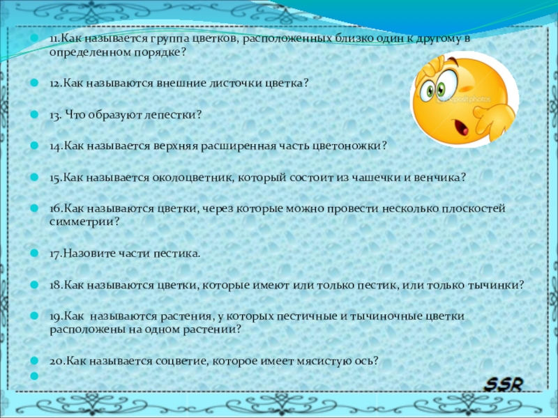 11.Как называется группа цветков, расположенных близко один к другому в определенном