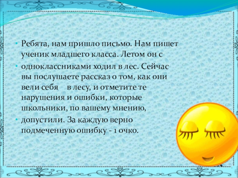 Ребята, нам пришло письмо. Нам пишет ученик младшего класса. Летом он