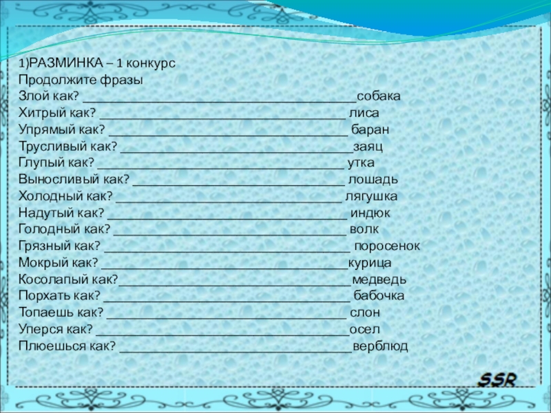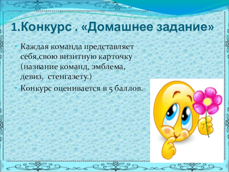 Каждая команда представляет себя,свою визитную карточку (название команд,