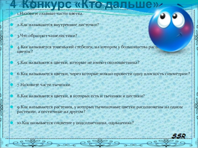 4.Как называется тоненький стебелек, на котором у большинства растений сидит цветок?