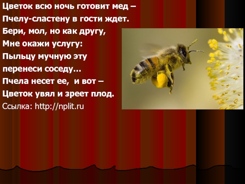 Слайд 9Цветок всю ночь готовит мед –