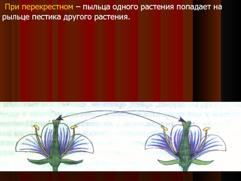 Слайд 7 При перекрестном – пыльца одного растения попадает на рыльце пестика