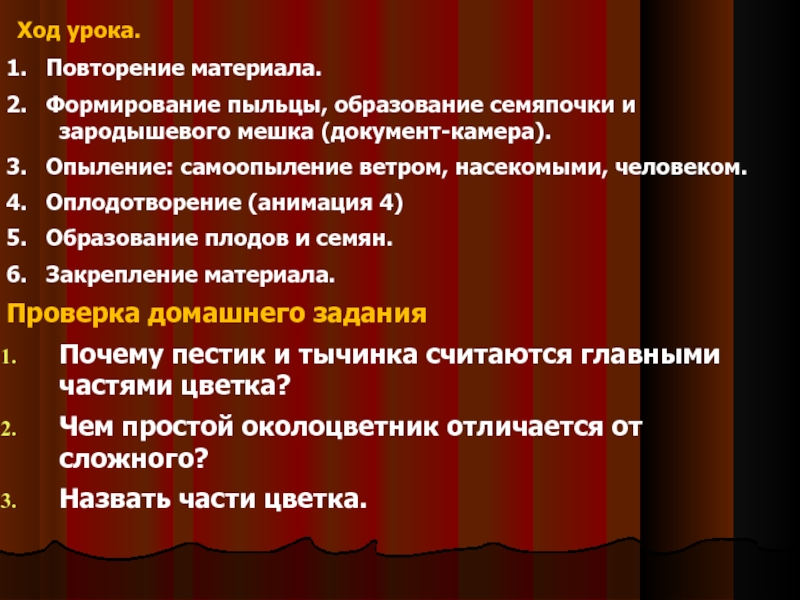 Цель: познакомить детей с процессами опыления, оплодотворения и
