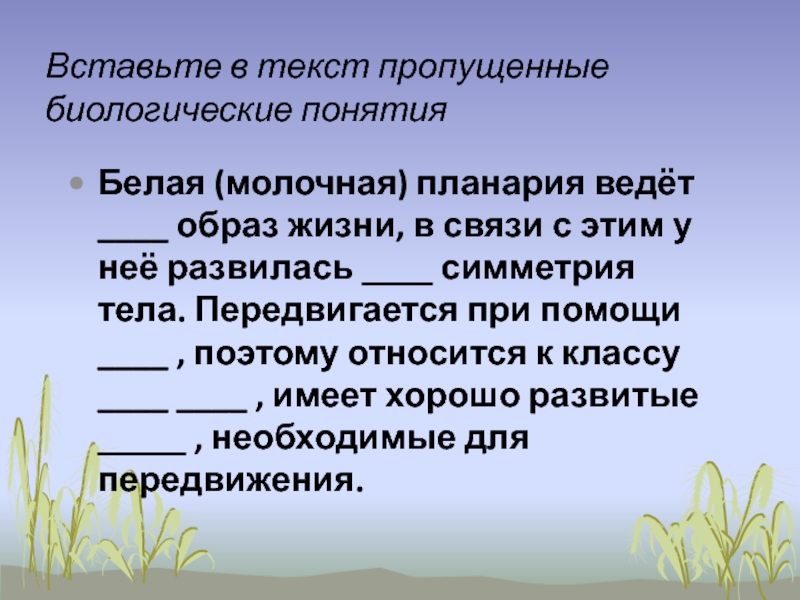 Слайд 11Вставьте в текст пропущенные биологические понятия