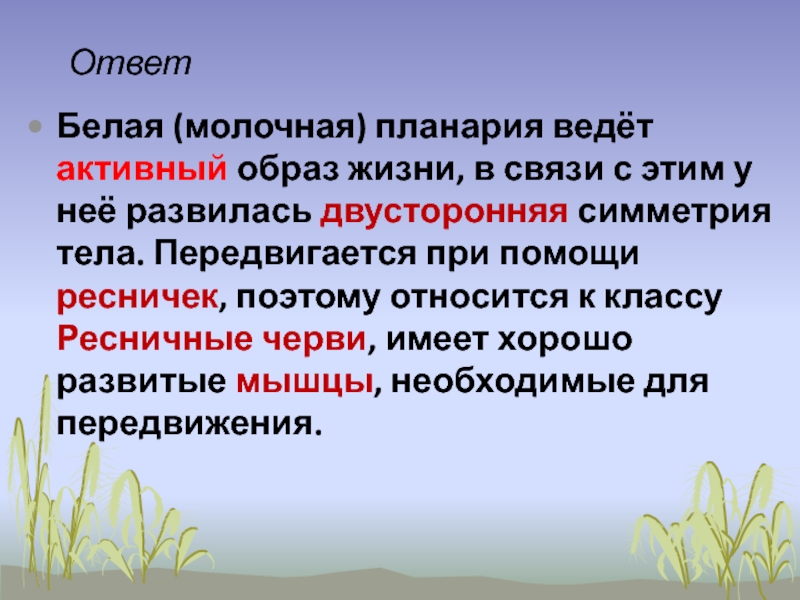 Белая (молочная) планария ведёт активный образ жизни, в связи с