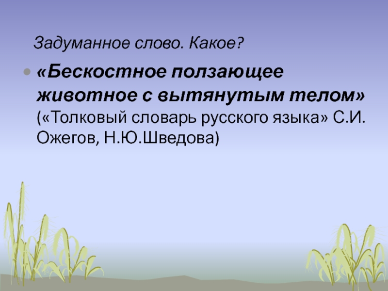 «Бескостное ползающее животное с вытянутым телом» («Толковый словарь русского