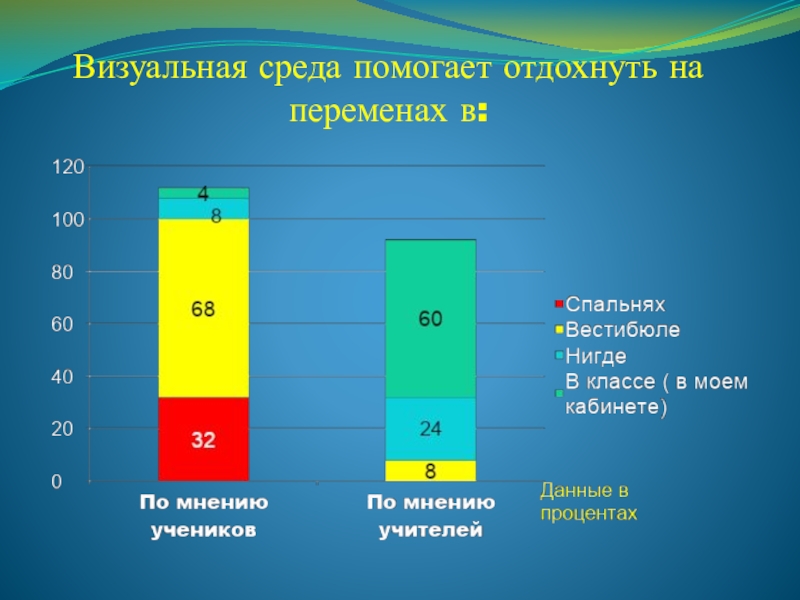 Таким образом, визуальная среда школы должна положительно воздействовать на эмоциональное, психологическое, физическое состояние субъектов образовательного процесса.