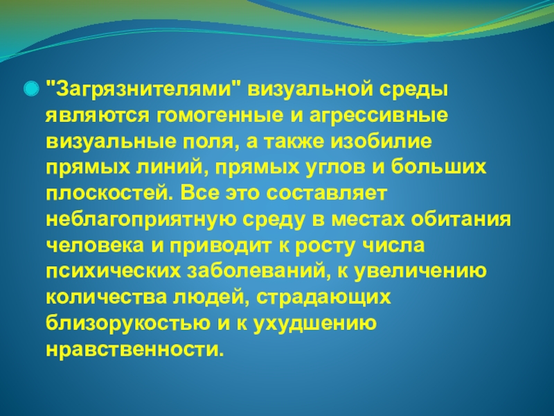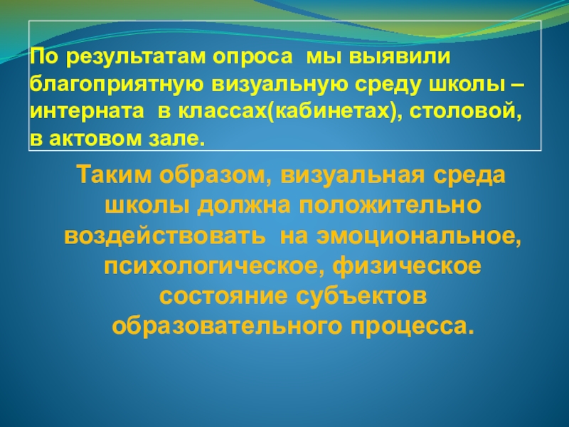 эмоциональное, психологическое, физическое состояние субъектов образовательного процесса как результата воздействия визуальной среды школы.