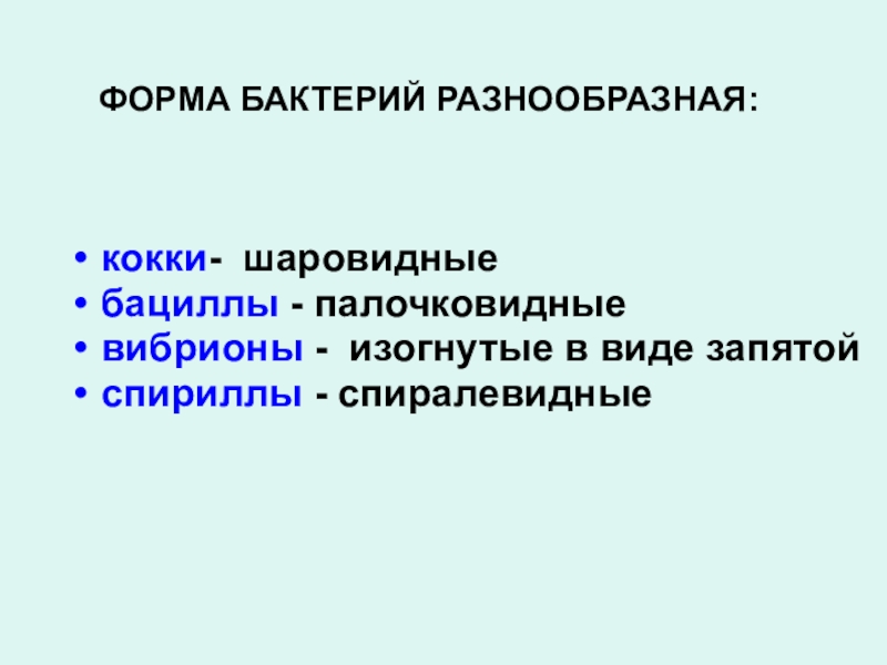 ФОРМА БАКТЕРИЙ РАЗНООБРАЗНАЯ: