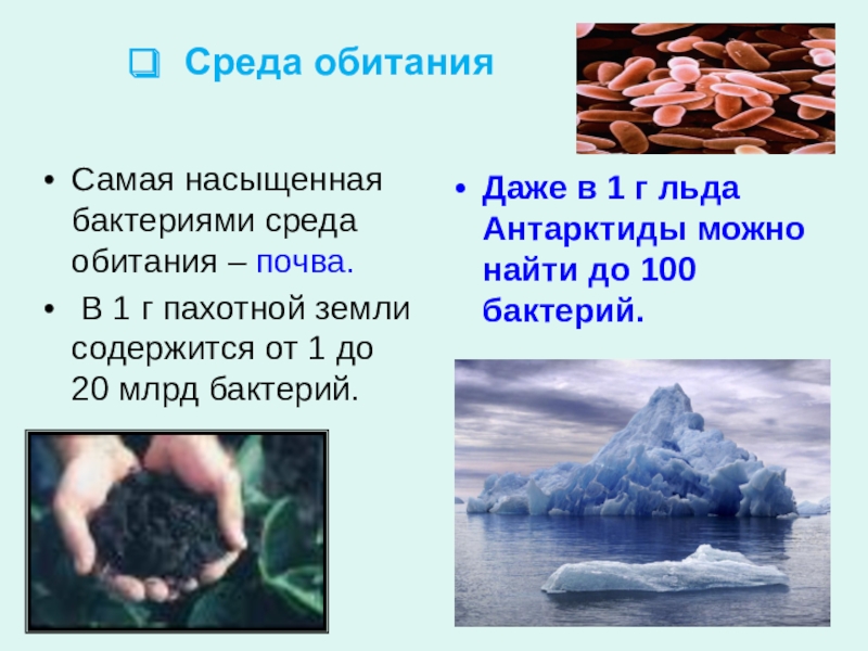 Даже в 1 г льда Антарктиды можно найти до 100 бактерий.