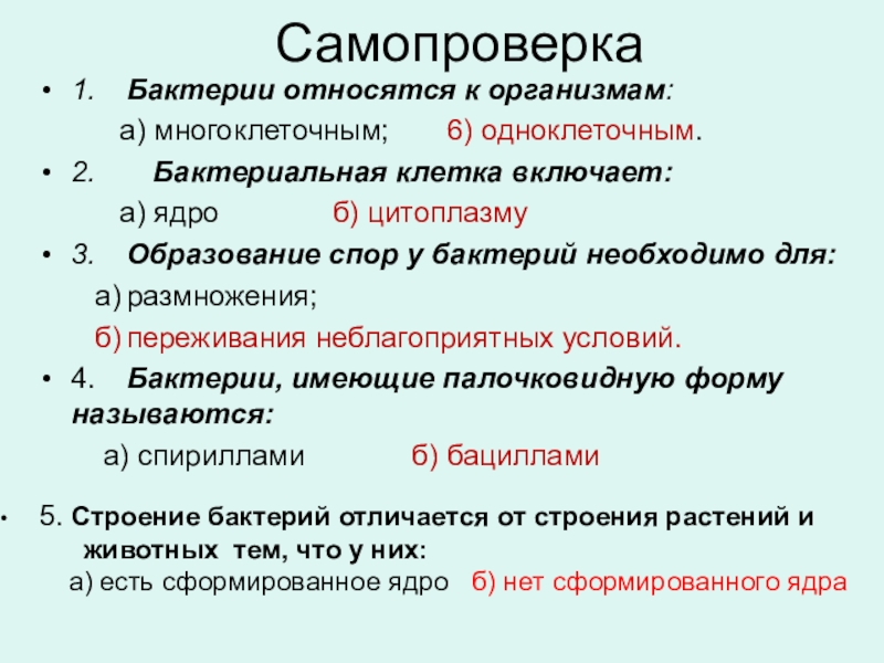 5. Строение бактерий отличается от строения растений и
