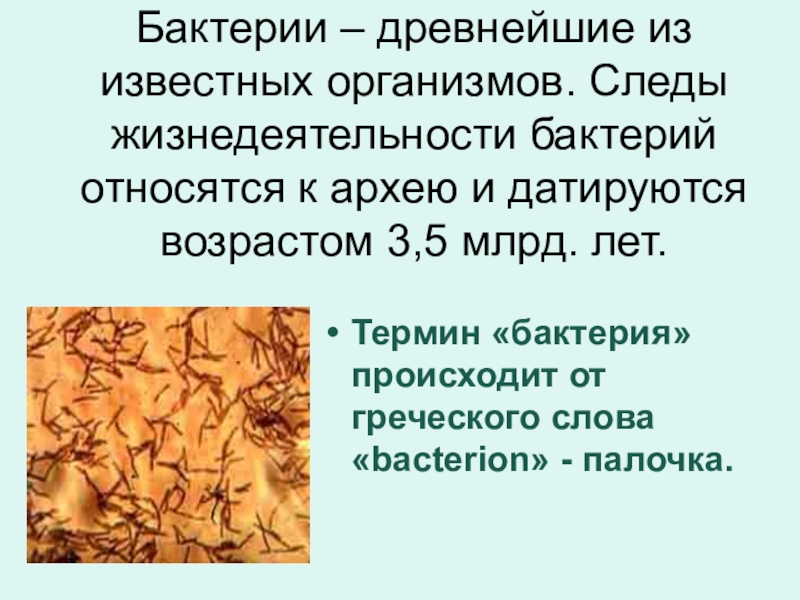 Термин «бактерия» происходит от греческого слова «bacterion» - палочка.