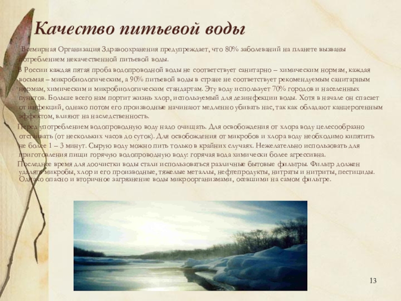 Слайд 13Качество питьевой воды