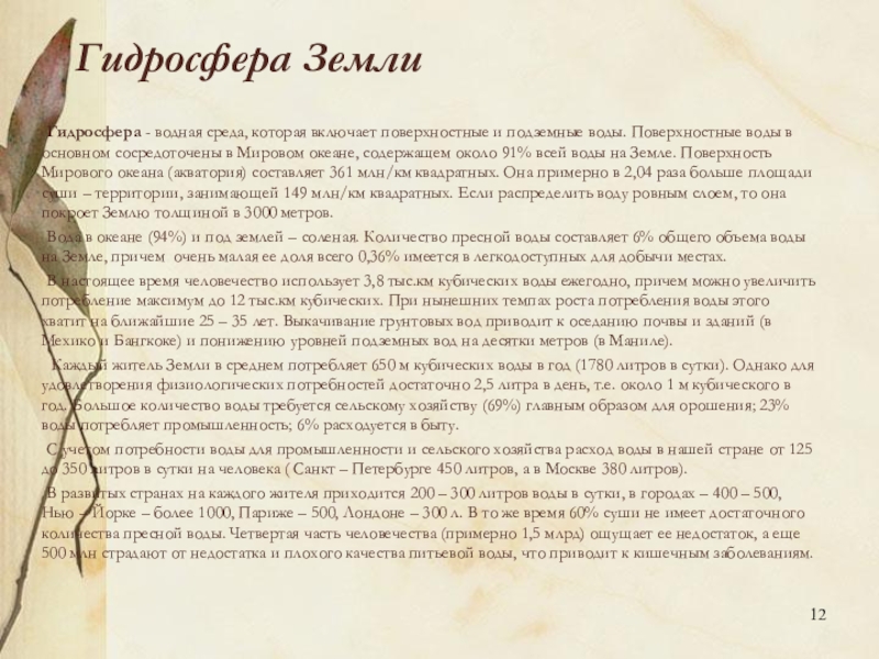Слайд 12Гидросфера Земли