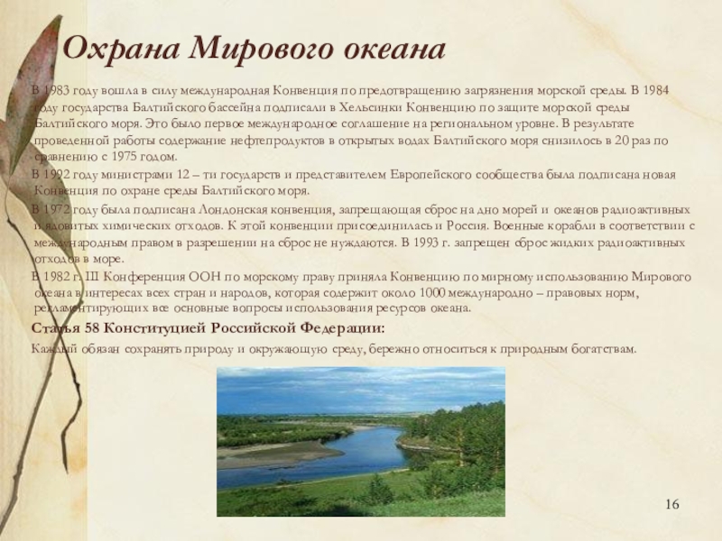 Слайд 16Охрана Мирового океана