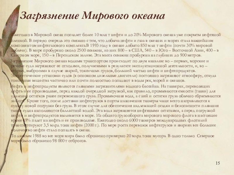 Слайд 15Загрязнение Мирового океана