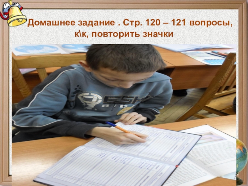Домашнее задание . Стр. 120 – 121 вопросы, к\к, повторить значки