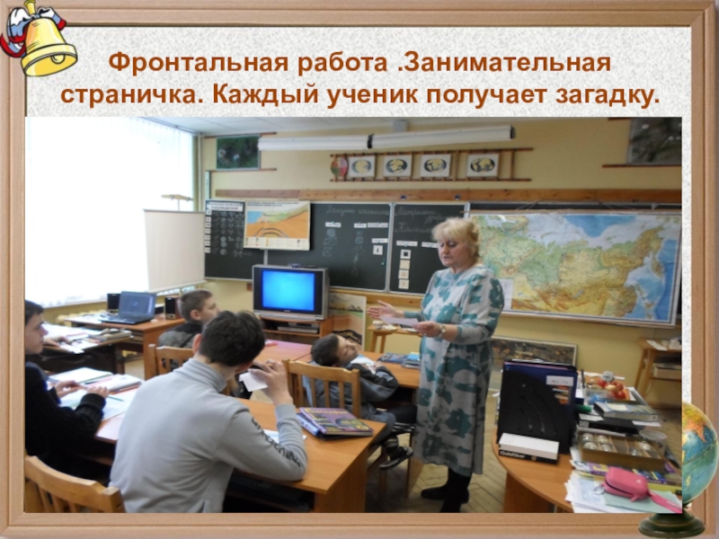 Слайд 12Фронтальная работа .Занимательная страничка. Каждый ученик получает загадку.
