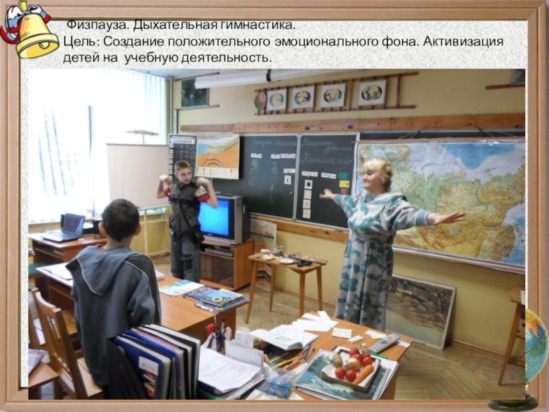 Физпауза. Дыхательная гимнастика.Цель: Создание положительного эмоционального фона. Активизация детей на учебную деятельность.