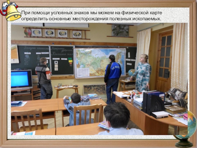 Слайд 14При помощи условных знаков мы можем на физической карте определить основные
