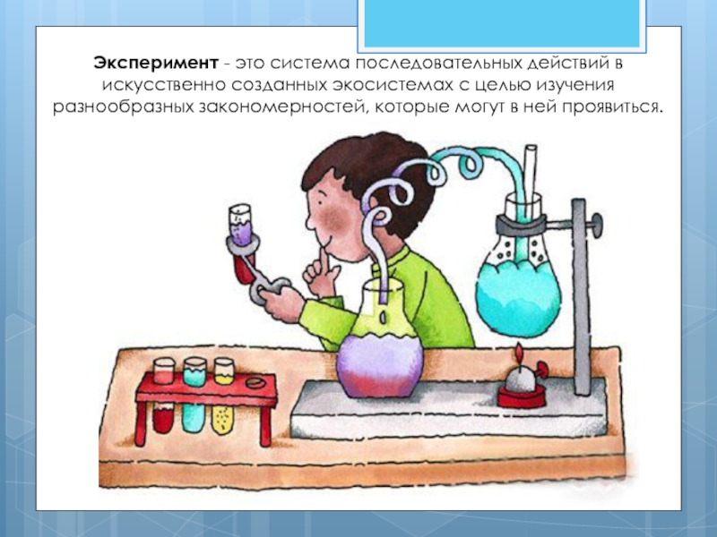 Слайд 9Эксперимент - это система последовательных действий в искусственно созданных экосистемах с