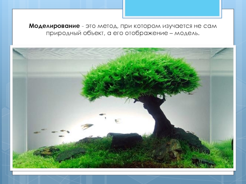 Слайд 12Моделирование - это метод, при котором изучается не сам природный объект,