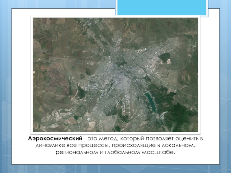 Слайд 11Аэрокосмический - это метод, который позволяет оценить в динамике все процессы,