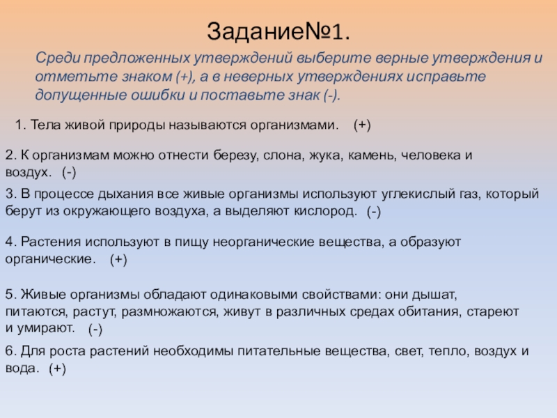 2. К организмам можно отнести березу, слона, жука, камень, человека и воздух.