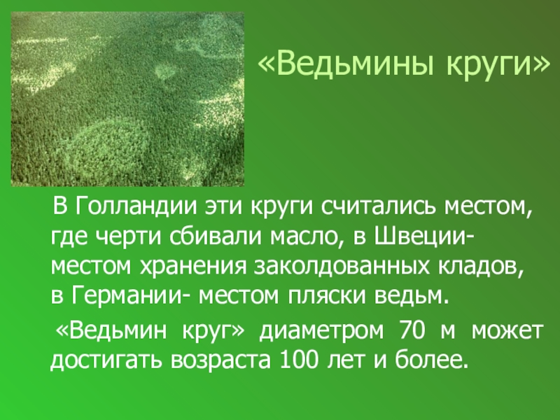 «Ведьмин круг» диаметром 70 м может достигать возраста 100 лет и более.