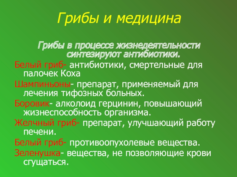 Грибы в процессе жизнедеятельности синтезируют антибиотики.