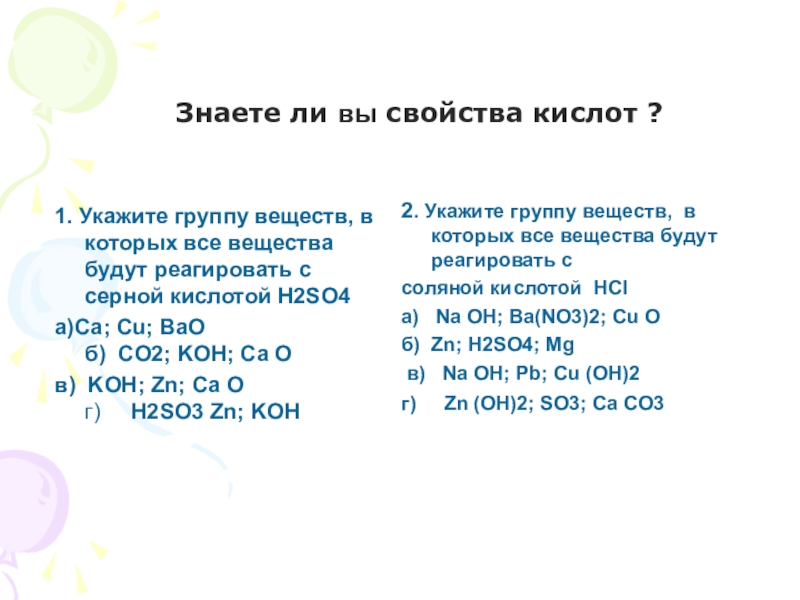 2. Укажите группу веществ, в которых все вещества будут реагировать с