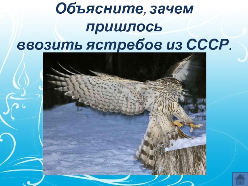 Слайд 11Объясните, зачем пришлось ввозить ястребов из СССР.