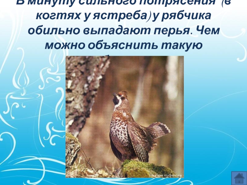 Слайд 10В минуту сильного потрясения (в когтях у ястреба) у рябчика обильно