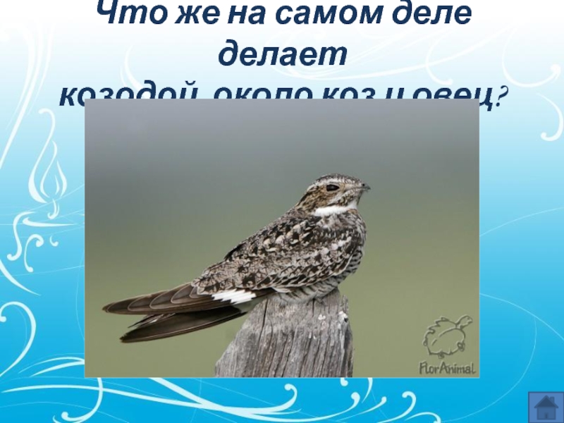 Слайд 9Что же на самом деле делает козодой около коз и овец?