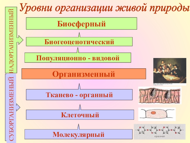 Органный уровень – строения органа как структурно – функционального объединения нескольких типов тканей.