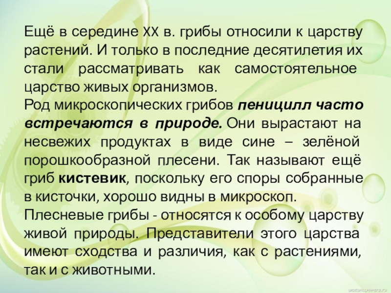Слайд 6Ещё в середине XX в. грибы относили к царству растений. И