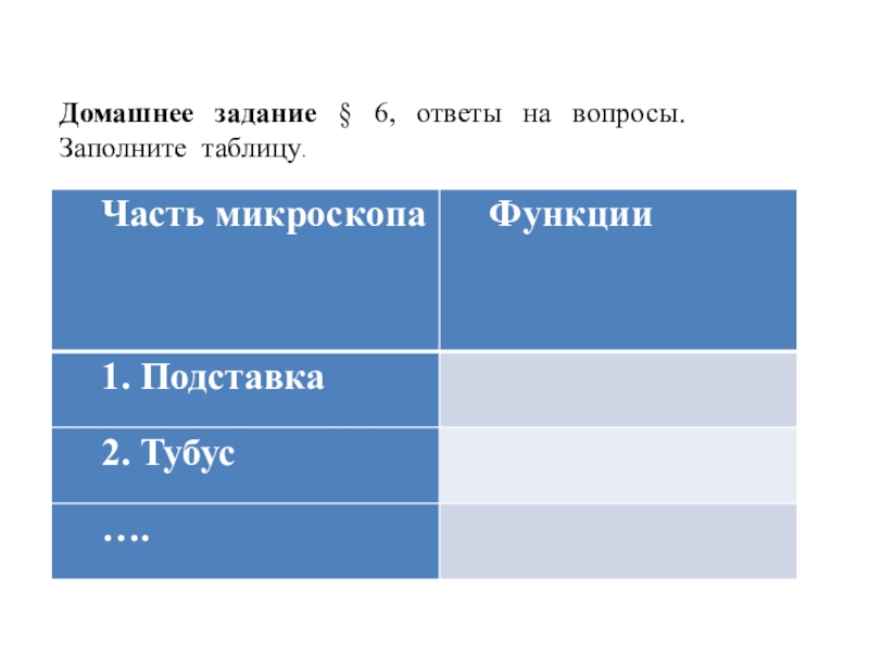 Слайд 8Домашнее задание § 6, ответы на вопросы. Заполните таблицу.